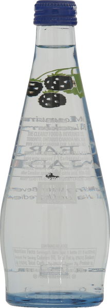 Clearly Canadian® Mountain Blackberry Sparkling Water Beverage - Kroger All-natural spring sourced sparkling water, imported from Canada. Nutritional Information Nutrition Facts 1.0 servings per container Serving size 1 bottle (11 fl oz/325ml) Amount per serving Calories 90 % Daily value* Total Fat 0g 0% Sodium 0g 1% Total Carbohydrate 25g 8% Sugar 25g 0% Protein 0g 0%