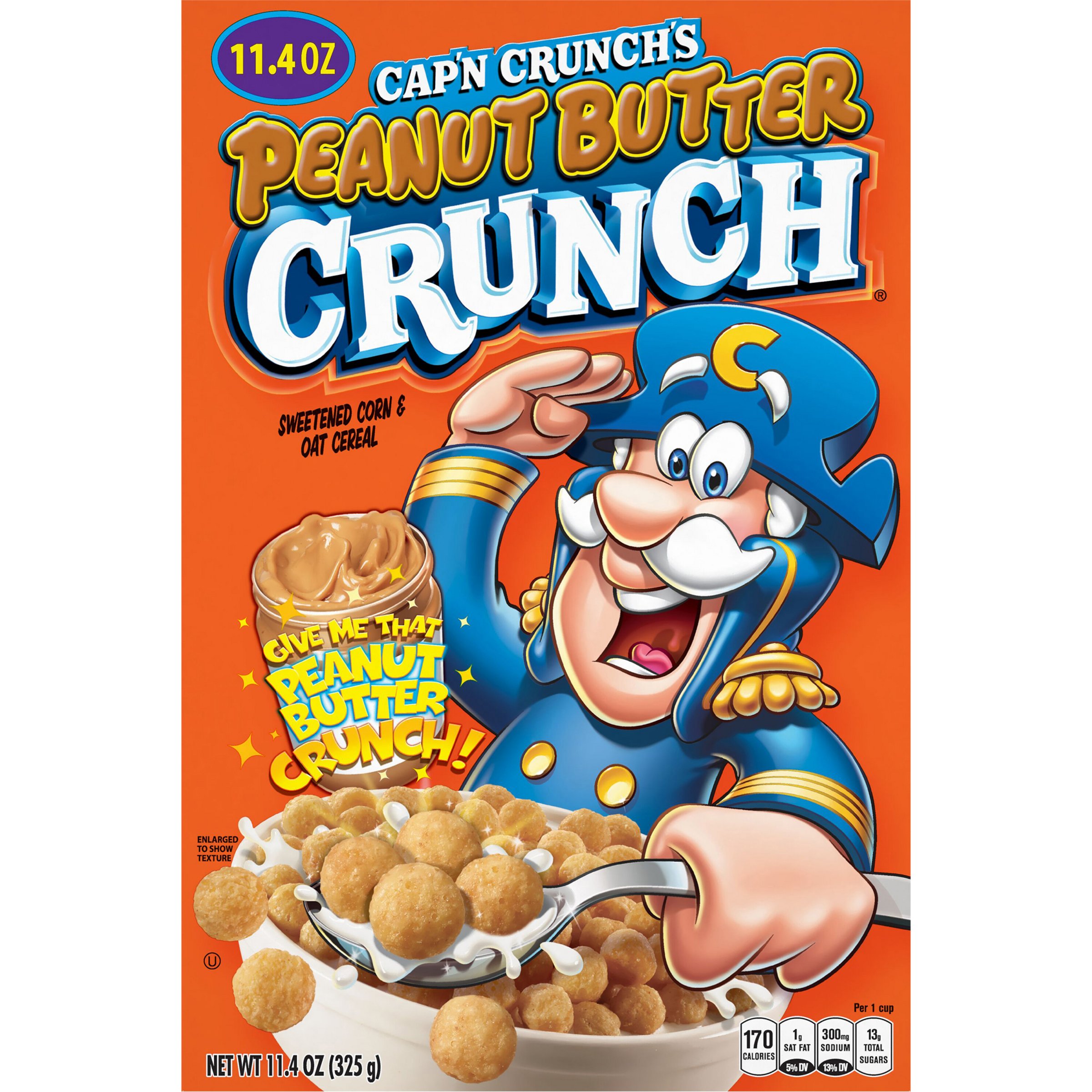Calories in Cap'n Crunch | CalorieKing All Berries. Peanut Butter Crunch. Halloween Crunch. Christmas Crunch. Freedom Crunch. Sweetened Corn & Oat Cereal, Peanut Butter Crunch. Peanut Butter Crunch. Caramel Popcorn Crunch. Cinnamon Roll Crunch.