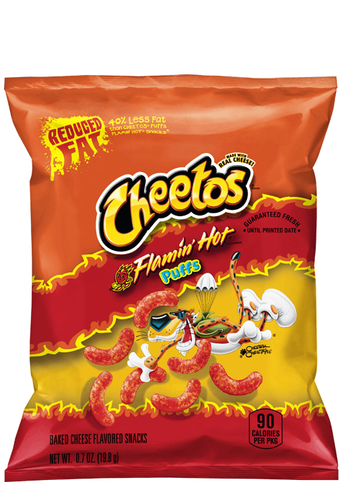 CHEETOS® Baked Crunchy FLAMIN’ HOT® Cheese Flavored Snacks ... CHEETOS ® Baked Crunchy FLAMIN’ HOT ® Cheese Flavored Snacks Description You want hot? We got FLAMIN’ HOT ® and 50% less fat than regular cheese flavored snacks. Let your inner cheetah run and feel good about it. Nutrition Facts Ingredients Buy Now Buy Now CHEETOS® Baked Crunchy FLAMIN’ HOT® Cheese Flavored Snacks (opens a popup) Product Reviews