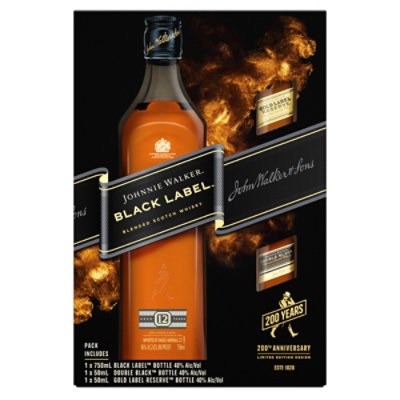 Johnnie Walker Prices of all Lables (Updated) - Bar Prices Johnnie Walker Double Black Price Blended Scotch Whisky: 750ml: $41.99 - $44.99: Johnnie Walker Gold Label Reserve Blended Scotch Whisky: 750ml: $79.99 - $89.99: ... Calories in Johnnie Walker black label has about 105 and contains about 15 grams of alcohol. A Johnnie Walker label has about 43% alcohol content in it.