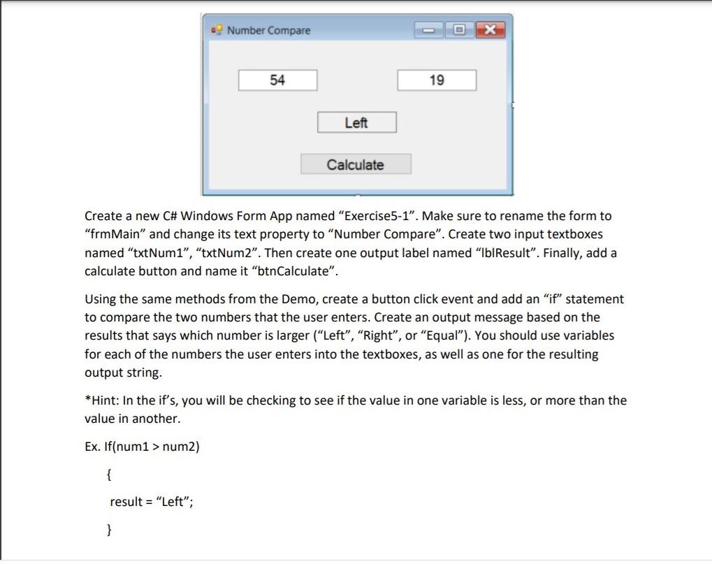 Solved Number Compare 54 19 Left Calculate Create a new C# ...
